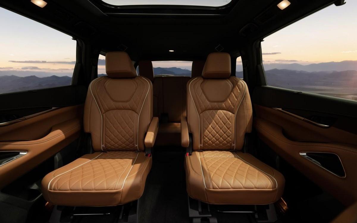 當家人進入2024款QX60的車內,同樣可以享受到這份松弛感,超過5米1的車身長度以及達到2米9的軸距,為其營造出寬敞的車內空間。 6座及劇院階梯式的座椅布局設計,可以使車內每一位乘員獲得更好的視野,人人皆是C位。第二排機長座椅可獨立調節,同時 兩座椅中間還有很寬的通道,進出第三排再也不需要側身進入,孩子上下車也能少一些磕碰、摔跤。這份自在無拘束的感覺,就如同在家中一樣。