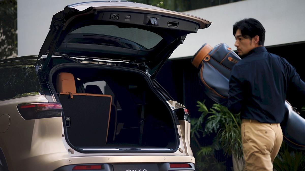 2024款QX60第二、三排座椅的靠背支持分割放倒的功能,可以變化出多種模式,最極限的狀態下,還能將后座靠背全部放倒,容積拓展至2352L,各種長較大的物品都能輕松裝入。即使在在滿員情況下,依舊能提供充足的行李裝載空間,讓“爸總”可以帶上家人來一場說走就走的旅行。