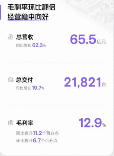 具體來看,小鵬汽車第一季度的營收達到了65.5億元人民幣,同比增長62.3%。總交付量達到21821臺汽車,同比增長19.7%。盡管凈虧損為13.7億元,但與上年同期的凈虧損23.4億元相比,虧損有所減少。上一季度的凈虧損為13.5億元。此外,公司的毛利率為12.9%。