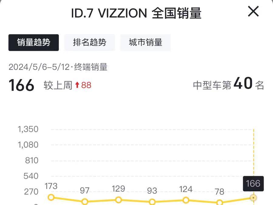 目前市場上,大眾布局的ID系列車型,在市場上的熱度并不高,而家族在去年年底上市的這款大眾ID.7 VIZZION,雖然被家族寄予厚望,可是從市場的表現(xiàn)來看,確實是被冷落了,整車在5月份的單周(5.06—5.12)僅僅賣出166輛的成績單,可以說這款車想要翻身,難度已經(jīng)很大了。