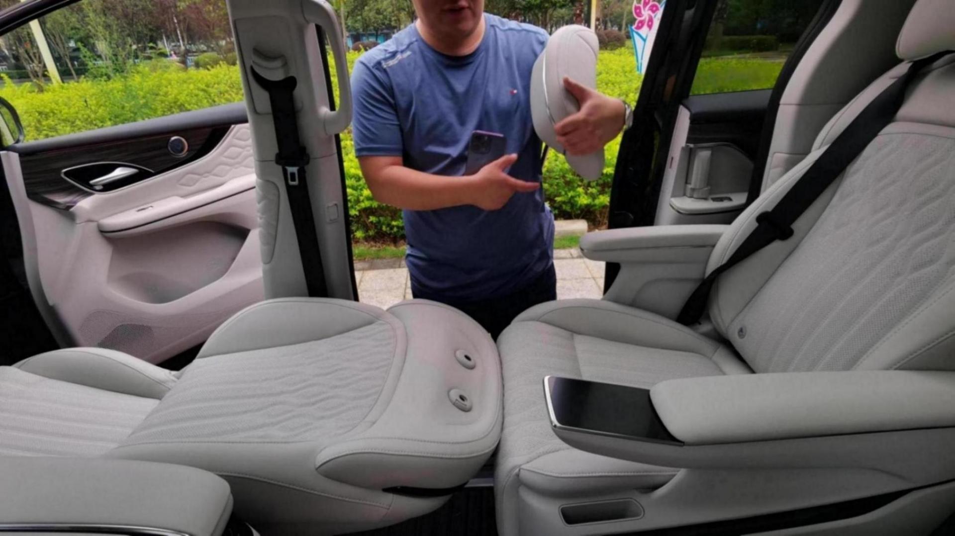 其他方面,筆者試了下,第三排打倒可以純平,然后第二排往前移一點,鋪上氣墊,就可以在車后部形成一張雙人床,而第一排座椅也可以完全打倒,拿掉頭枕后,可以與第二排座椅坐墊行成平行的姿勢,從而也能變成一張床,對于喜歡自駕游的人而言,還是很不錯。