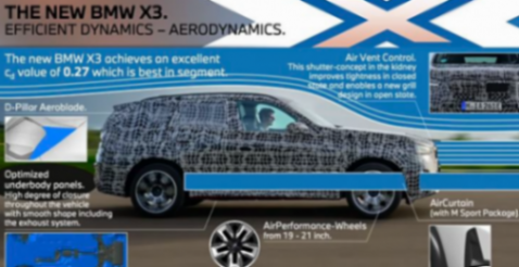 還有就是,全新一代寶馬X3的風阻系數也優化到了0.27Cd,比現款的0.29Cd有所提升,燃油經濟性值得期待。要知道,現在的油價是一天比一天貴,所以省油才是王道。
