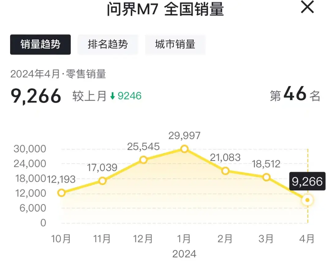 在華為的加持下,問界M7無疑成為了增程界代表車型,同時更是令理想頭痛的對手。數據來看,AITO過去幾個月的最高單月銷量近3萬輛,但4月份不足萬輛。這或許受改款影響,但新款在預售后,卻遲遲不見官方公布訂單量,新款會不會爆冷?3天之后就有答案。