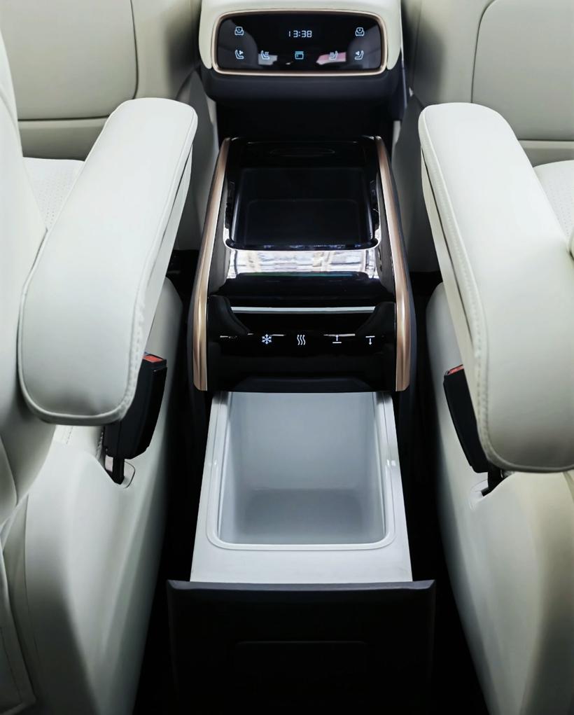 乘用性方面,東風奕派eπ008的長寬高分別為5002/1972/1732mm,軸距為3025mm;單以尺寸編排而言,已經要比零跑C16足足大了一圈。因此,以其六座布局的內部座椅結構來看,空間表現還是比較充裕的。與此同時,新車的第二排座椅還是配備了電動調節、音箱頭枕、電動腰托、通風/加熱/按摩等功能的零重力航空座椅,搭配20揚聲器WANOS全景環繞音效、小桌板、吸頂“彩電”以及前排扶手箱下方可支持前后移動的冷暖冰箱等,至少在豪華格調方面,營造得還是比較到位的。