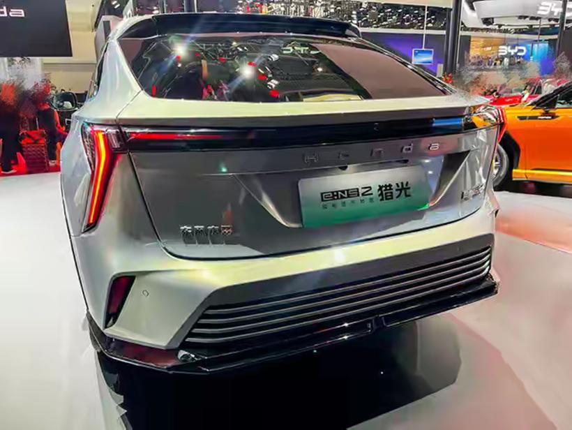 而在獵光e:NS2的車(chē)身側(cè)面部分,作為獵裝轎跑SUV定位的車(chē)型,其舒展卻不失力量感的溜背布局,結(jié)合類(lèi)似鉆石切割紋理的腰線和隱藏式門(mén)把手等設(shè)計(jì)細(xì)節(jié),既能塑造其側(cè)顏的動(dòng)態(tài)美感,甚至還能塑造出些許性能風(fēng)范。就連它的尾部,順延大溜背形成的平面后車(chē)窗與“小鴨尾”,配合著層梯式后包圍以及鋒利的后鏟,可讓其外觀整體的運(yùn)動(dòng)畫(huà)風(fēng)得到完美收尾。此外,兩側(cè)形成了“獠牙”樣式的貫穿式尾燈,還能呼應(yīng)前臉的科幻屬性。至此,其出眾的顏值表現(xiàn),便可充分契合當(dāng)前新能源市場(chǎng)的主流審美。