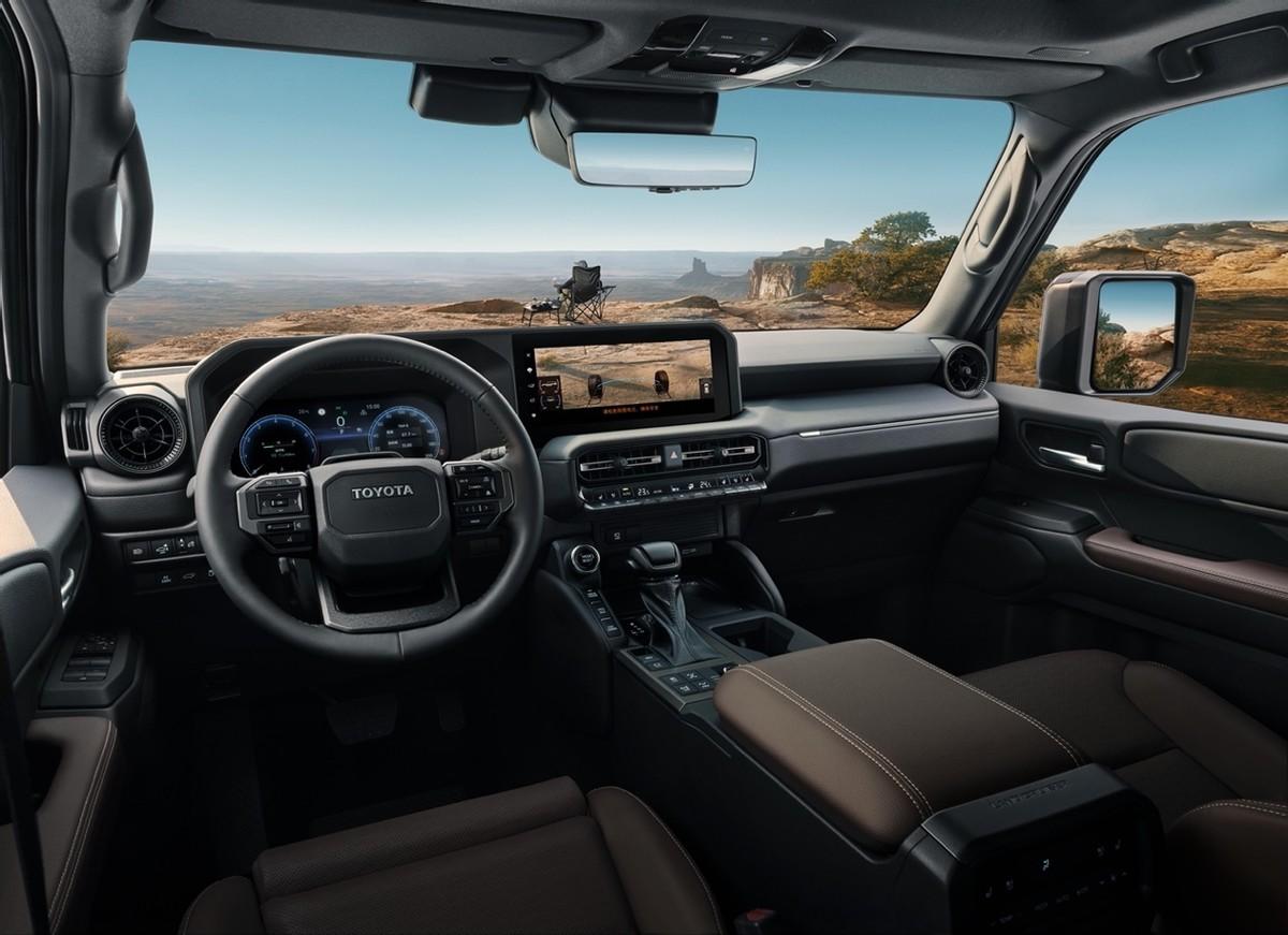 論硬派越野的智慧,全新普拉多可謂由表及里都在圍繞“更強大、更從容的駕馭”不斷進化。全新普拉多的每一處設(shè)計,皆從實際越野需求出發(fā)。2850mm的軸距精準兼顧了惡劣路面通過性與室內(nèi)空間,擴大了2排、3排前后間距和行李箱空間。此外,全新普拉多的前懸設(shè)計更短,外后視鏡寬幅也低于LC150車型,確保了使用便利性與狹窄路段的通過便利性。通過前后懸短、水平車軸、座艙整體后移,縱向直立的車窗設(shè)計,打造出獨特的車身比例。車輛燈組及格柵的機能部件放置于中央偏高處,保證通過惡劣路況時也不易損壞。緊致的車身配合外凸式的輪胎設(shè)計,營造壓倒性的穩(wěn)定感。在內(nèi)飾設(shè)計上,車內(nèi)儀表臺采取水平基調(diào)設(shè)計,通過追求前方和側(cè)方視野的極致設(shè)計,確保安全的越野行駛。