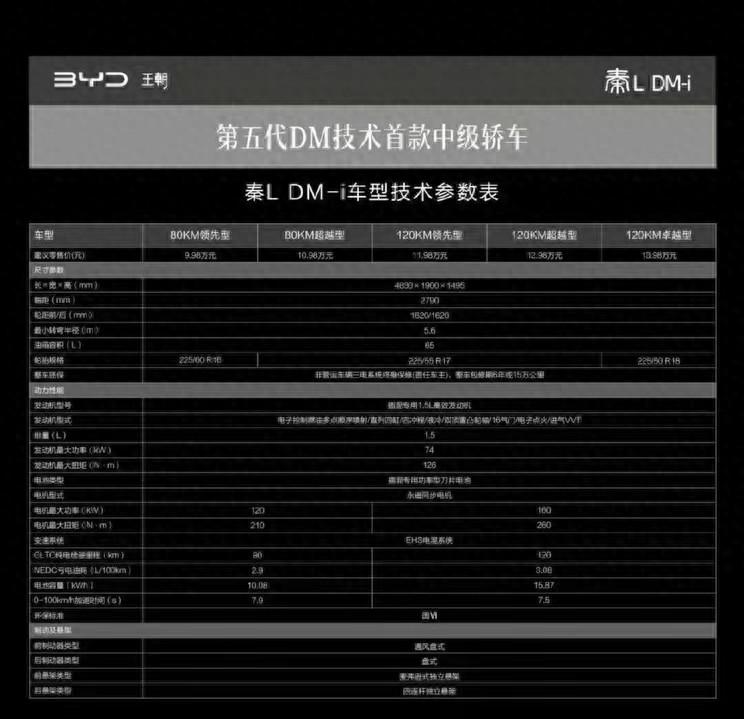 在秦L即將上市,比亞迪第五代DM動力發布的檔口,網絡上提前曝光了一組秦L的價格和配置表,內容顯示:新車共分為共分為5個配置,售價9.99萬起。您覺得可信嗎?咱們來分析一下。