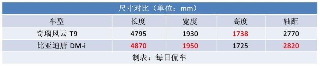 尺寸方面,長寬高分別為4795/1930/1738mm,軸距為2770mm。相比唐DM-i整體上小了一圈,高度更充分。