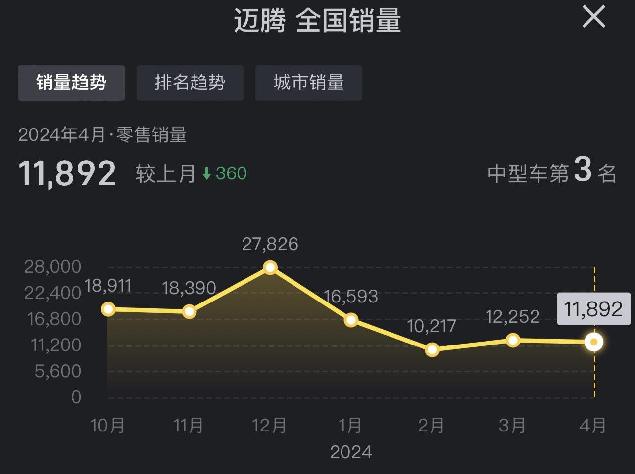 要說關(guān)注度最高的自然是大眾邁騰,全新一代邁騰在剛剛過去的2024北京車展亮相,全新的設(shè)計令人眼前一亮。要知道邁騰可是國內(nèi)合資中型轎車的代表車型,自2007年在國內(nèi)上市以來,一直保持著很高的銷量,如今在新能源車的沖擊下,現(xiàn)款邁騰依舊能有著上萬的月銷量。