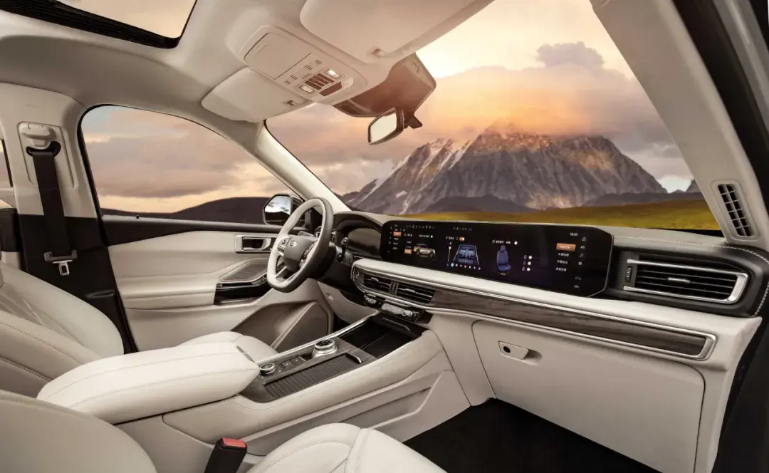 這里不得不說看得見的豪華,當然是座椅皮質,福特探險者赤金版的材質直接采用百萬豪車同源的Savannah全粒面半苯胺真皮,要知道,目前大多數豪華車也只是輕修面真皮、Nappa真皮、皮胚,而用到等級更高的半苯胺真皮,在整個汽車行業半苯胺的應用比例不超過10%。