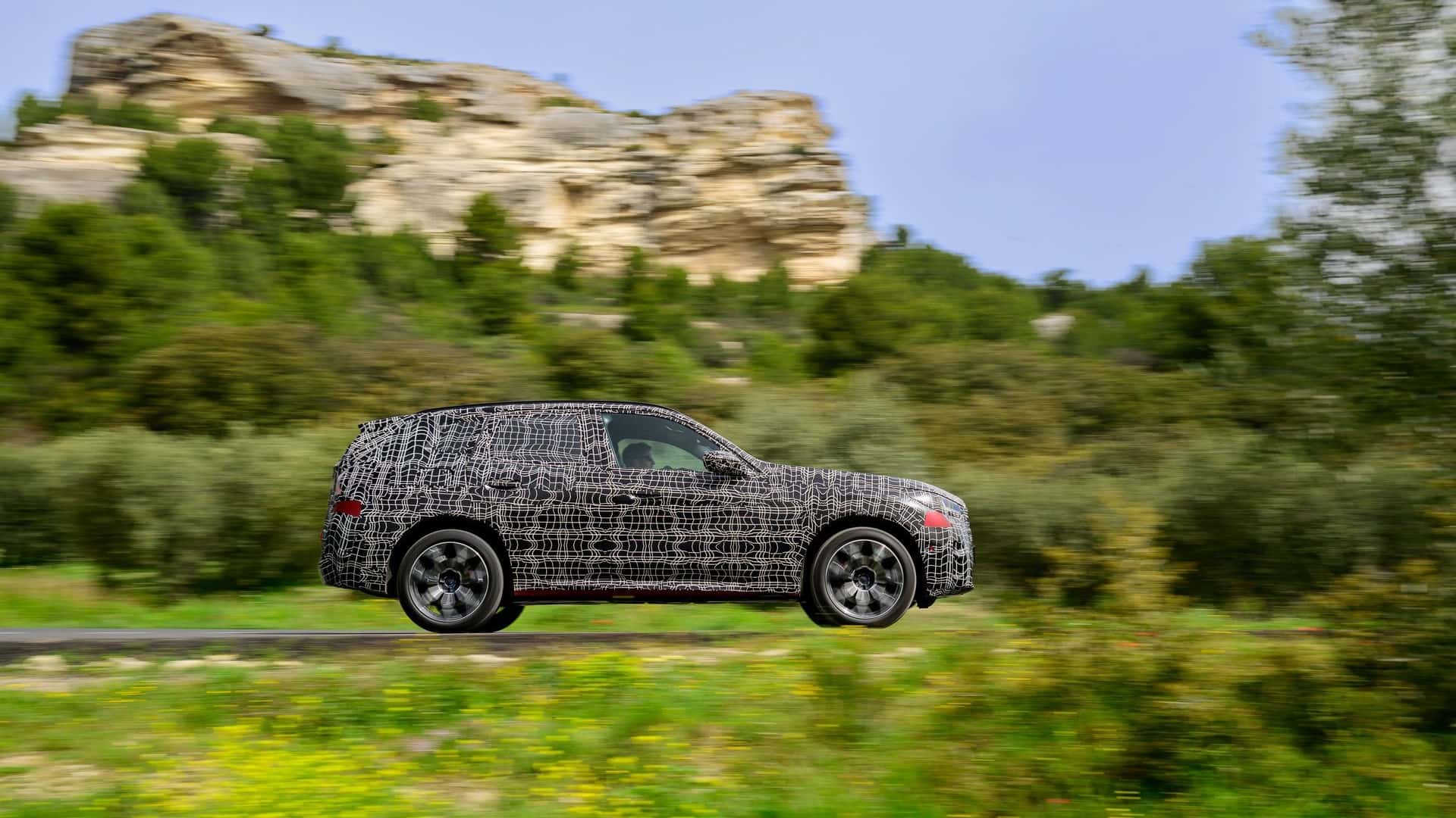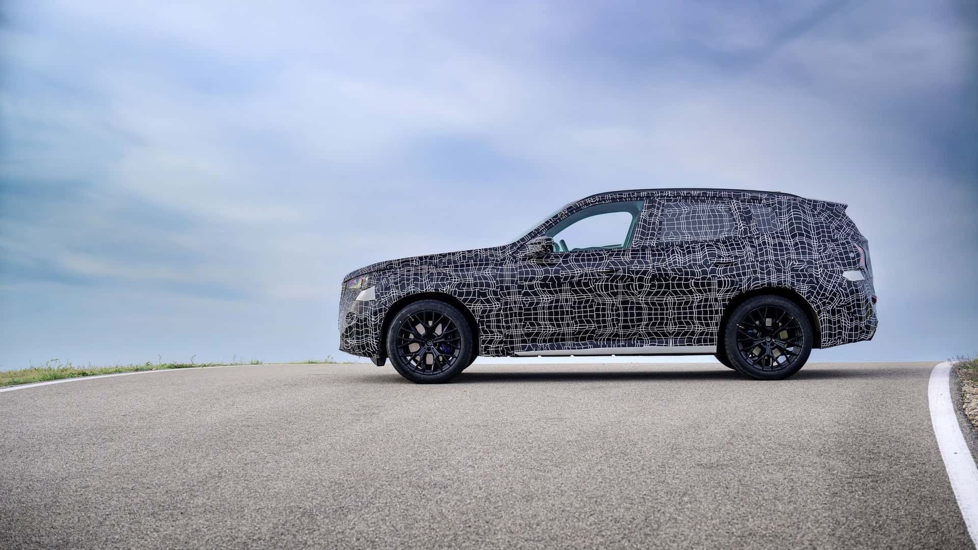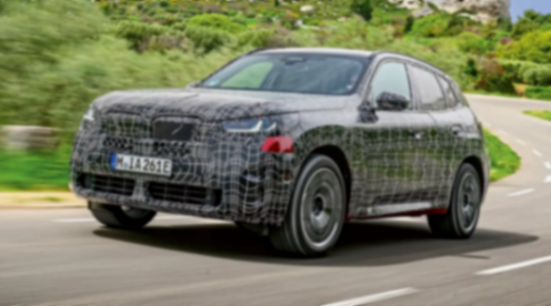前保險杠部分則有著大面積封死狀態,扁平的下格柵同樣是左右兩段,并加入了獨特的鍍鉻條進行包裹,霧燈區域還有縱向的車輪進氣道,提升了運動感。在車側面,A柱下方有著充電接口,可能是iX3也有可能是插電混動版本,還有待進一步確認,畢竟沒有車尾的圖片,除此之外,也采用了相對獨特的車側線條,腰線相當簡潔,輪拱呈特殊造型突出,車頂略帶下墜并安裝了行李架,D柱處還有著特殊的拐角設計,后輪略帶寬體效果,側裙加入了特殊的黑色裝飾整體符合寶馬最新的家族設計。