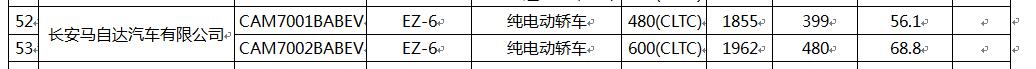 具體來看,本次申報的兩款車型搭載了56.1和68.8千瓦時鋰電池組,作為參考,深藍SL03是58.9和80千瓦時,所以正像前文所述,比深藍的配置還要低一些,電池質量分別為399和480千克。結合此前的申報信息,當然是磷酸鐵鋰電池組,一切都為省錢出發,顯示了低成本的定位。好消息是由于電池真小,加上本身長安EPA平臺有著不錯的輕量化水平,最終整車質量為1855和1962千克,作為純電動轎車還算有著不錯的表現。最終CLTC在工況純電續航里程分別為480公里和600公里,那你說一款480公里CLTC續航的純電動車在中國想賣多少萬元起呢,個人建議不要超過15萬元。