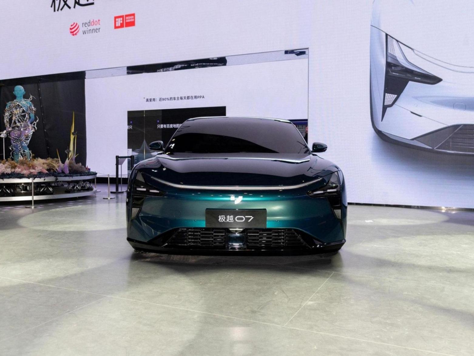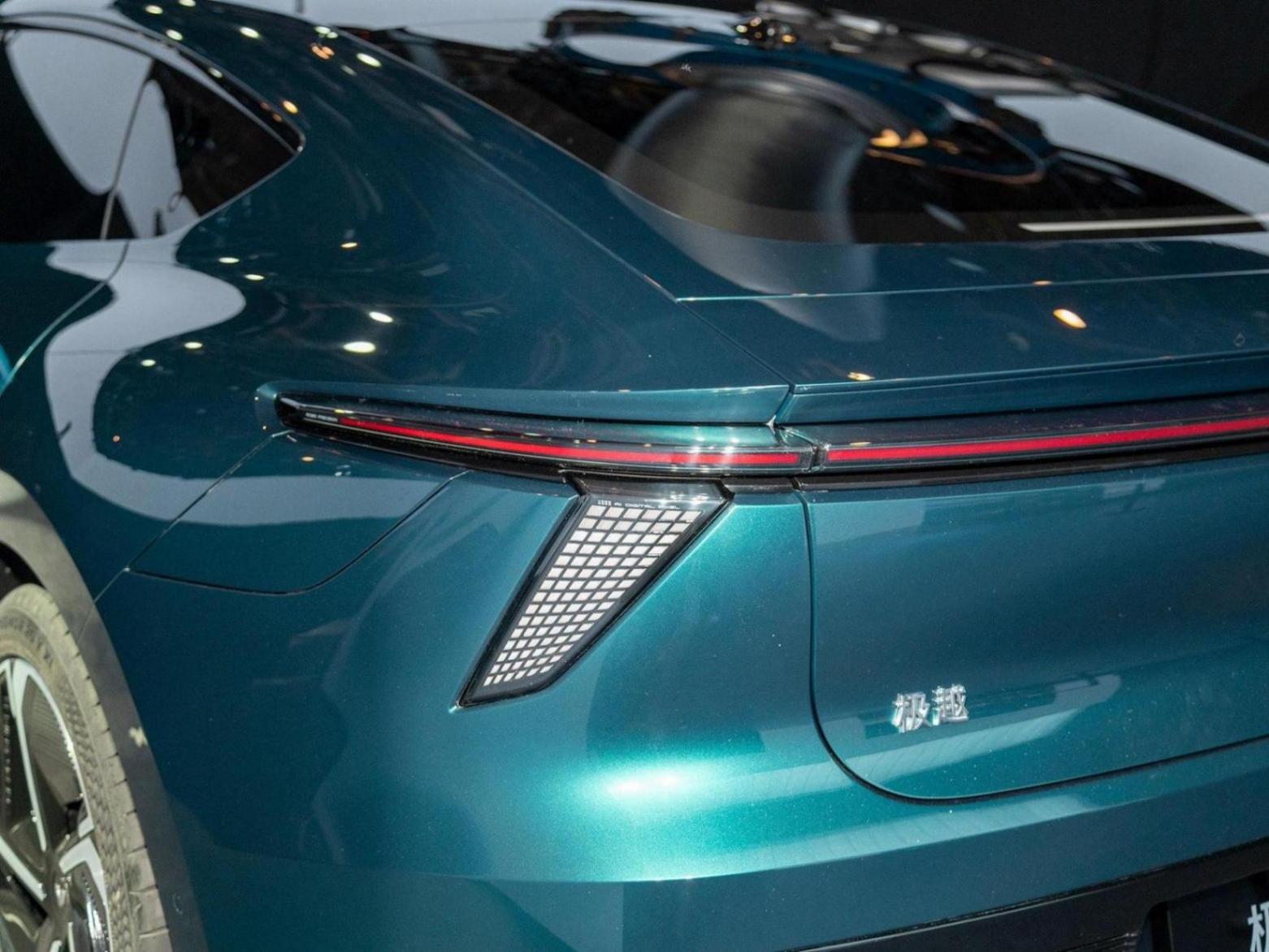 在回顧外觀方面,新車此前已經有很多曝光,獲得了廣泛好評,前臉部分延續了極氪001的設計,彎折的日行燈帶,突出的車鼻,左右兩側梯形的大燈組,梯形下格柵都有著很強的層次感和設計感。車身側面大溜背式轎跑線條相當的優美,比極氪001那樣佝僂的車身不知道強到哪里去。隱藏式車門把手無框車門等元素當然都不會缺席,氣動輪轂有效地提升了續航方面的表現。