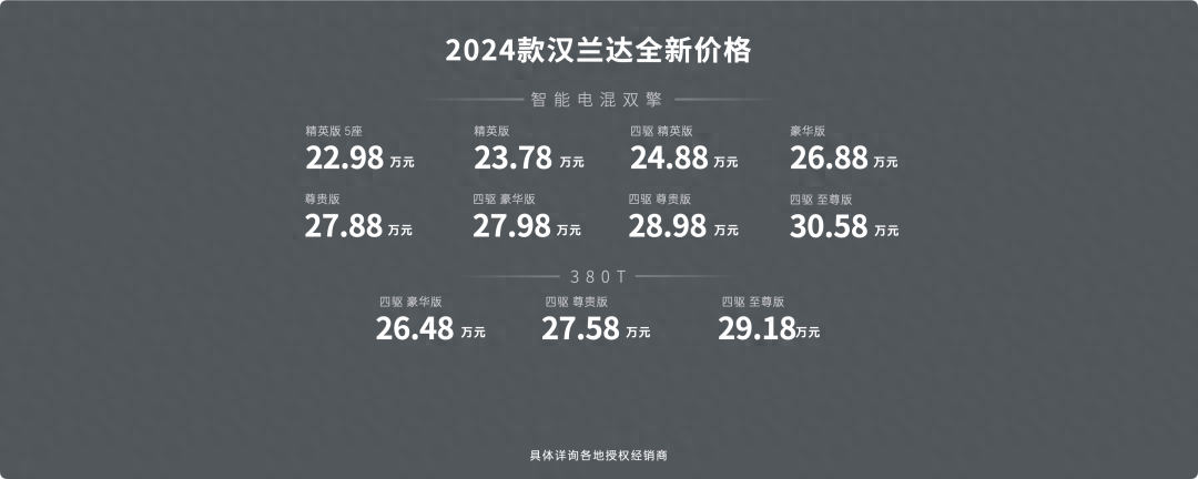 近日,廣汽豐田2024款漢蘭達(dá)正式上市,新車指導(dǎo)價24.98-32.58萬元,雙擎車型全系最高降價4.3萬元,包含建議零售價下調(diào)2.3萬元,官方APP權(quán)益2萬元,起售價低至22.98萬元;燃油版車型全系最高降價5.3萬元,包含建議零售價下調(diào)3.3萬元,官方APP權(quán)益2萬元,起售價低至26.48萬元。