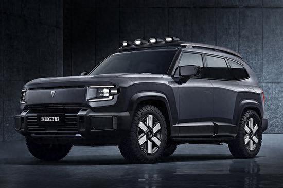 外觀方面,深藍 G318 采用硬朗的車身線條設計,整車造型較為方正,彰顯其硬派 SUV 的定位。車頭采用封閉式格柵設計,長條形裝飾板與 C 字形大燈相貫通,視覺整體感較強。前包圍造型較為厚重,搭配車頂探照燈以及外掛式備胎,越野氣息十足。