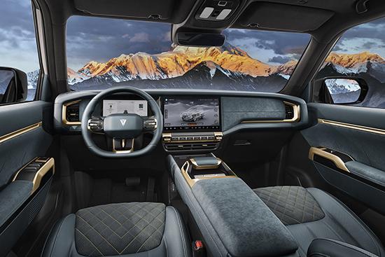 動力方面,深藍 G318 搭載增程式動力系統,單電機版車型電動機總功率 185kW,雙電機版車型電動機總功率 316kW,0-100km/ 加速時間為 6.3s。此外,新車還配備中央無級差速鎖和磁吸式機械差速鎖,可實現前后軸 0-100% 扭矩分配。