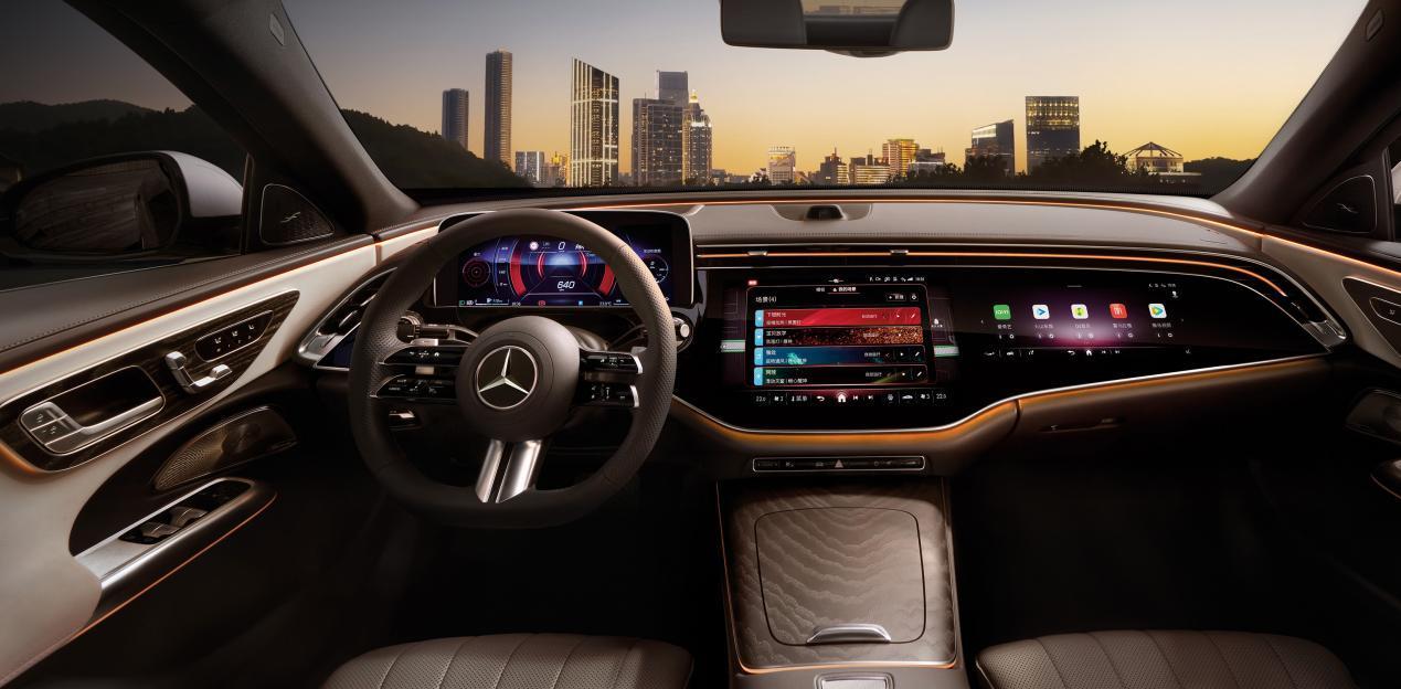 我們的測試車是2024款奔馳E 300 L豪華運動型(以下簡稱:奔馳E 300 L),外觀設計典雅而不失現代感,車身線條流暢,營造出一種動感十足的姿態。智能座艙的設計更是將科技與藝術結合,營造出一種帶有科技感的豪華氛圍。