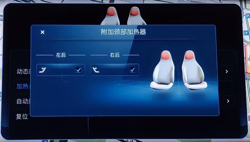 在后排座椅的加熱功能中,頭枕加熱也成為了奔馳E 300 L的一個亮點,可以在車機系統中將后排頸部加熱功能打開,當乘客再開啟座椅加熱時,頭枕也會一塊加熱,在舒適體驗上更進一步。