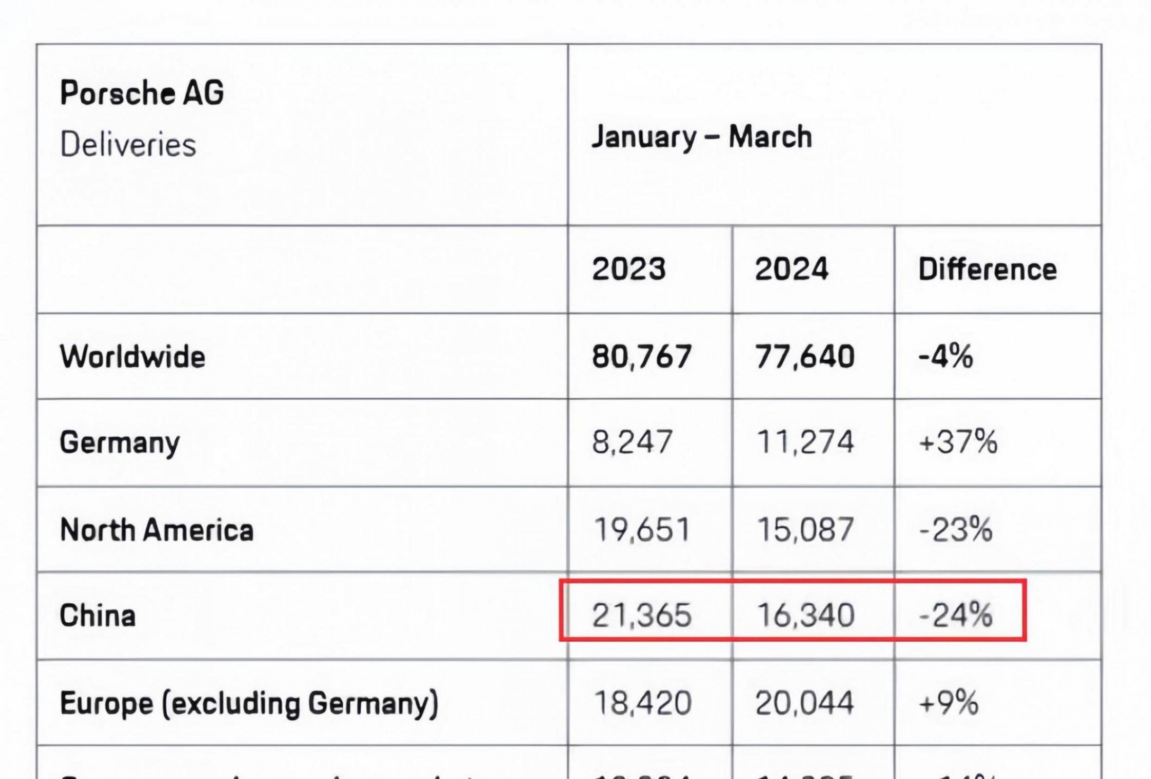 我們從這張圖就能一窺保時捷在大陸地區的頹勢了,根據這張圖的資料顯示,保時捷一季度在中國地區的銷量是16340輛,而這個數字在去年的數字是21365輛,換言之,就是Q1的內地,足足少了24%的銷量,這些就能說明一件事情,就是保時捷在內地的銷量遠不及之前的成績樂觀,可保時捷中國卻還選擇不斷地向經銷商壓貨,從而維持表面數字的理想化。