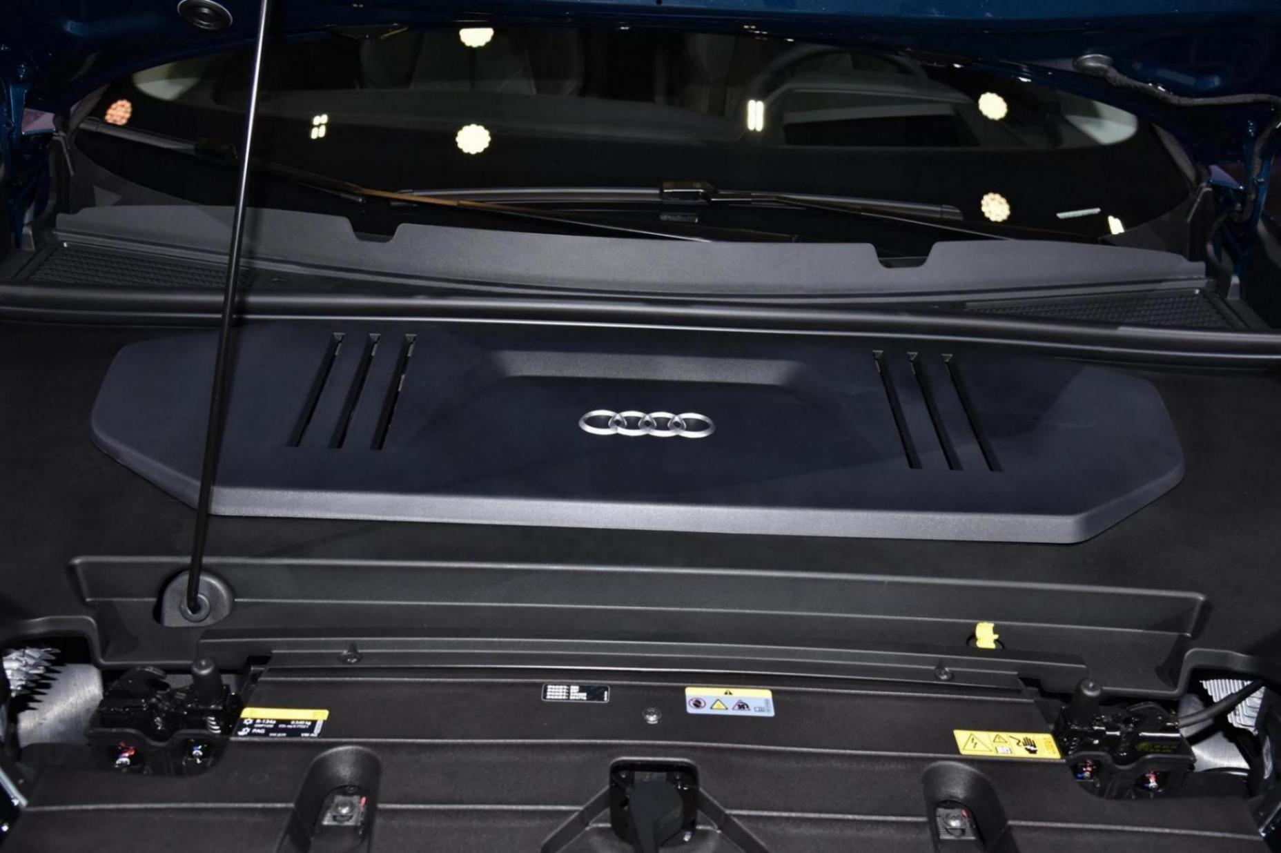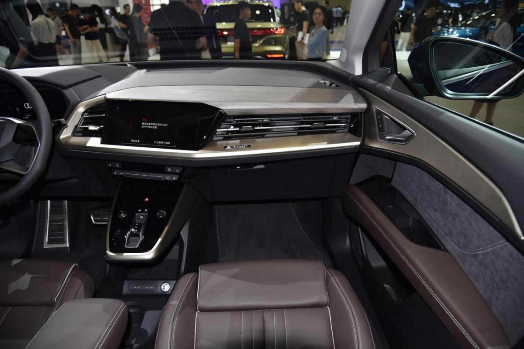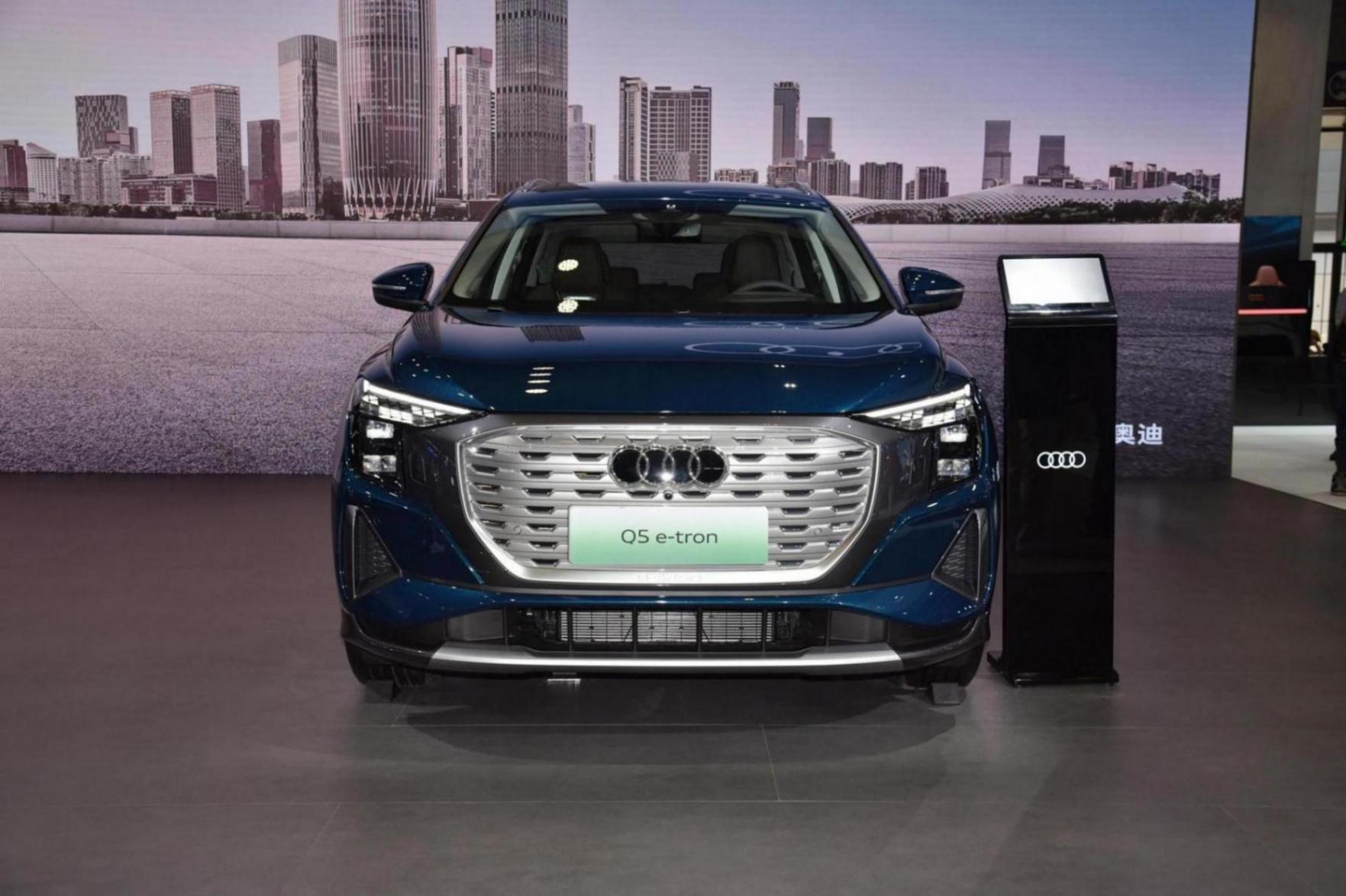 前臉,延續了Q5 e-tron家族設計理念,保留8邊形格柵,亮色系中網為封閉式設計,以彰顯純電身份。兩側的大燈為間隔小燈組布局,點亮瞬間可實現呼吸律動,具備四種數字簽名燈語。