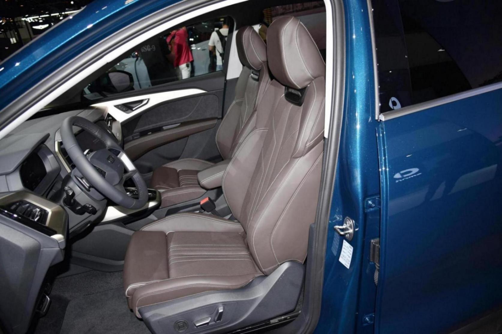 車輛的長寬高尺寸為4876*1860*1675mm,軸距為2965mm,內部采用2+2+2的運動風座椅布局,以皮革包裹。一共擁有14項座椅調節功能,前兩排座椅支持加熱功能,第三排座椅支持5/5比例座椅放倒,放倒后,后備廂空間得到拓展。配12V行李艙電源接口,為戶外露營創造條件。