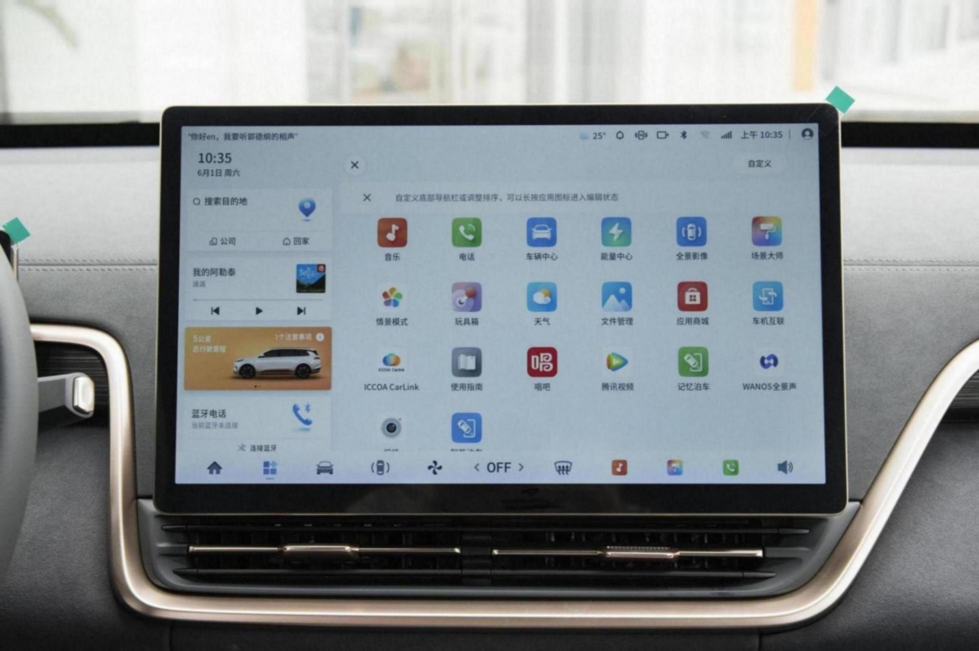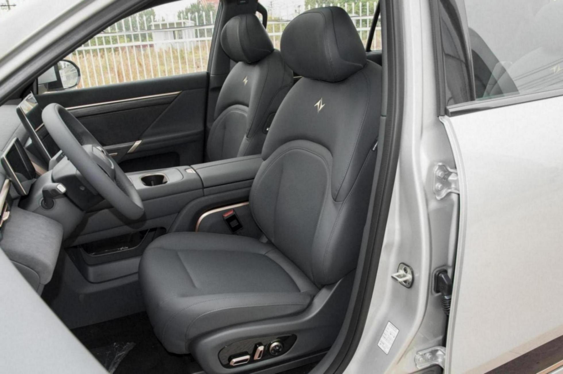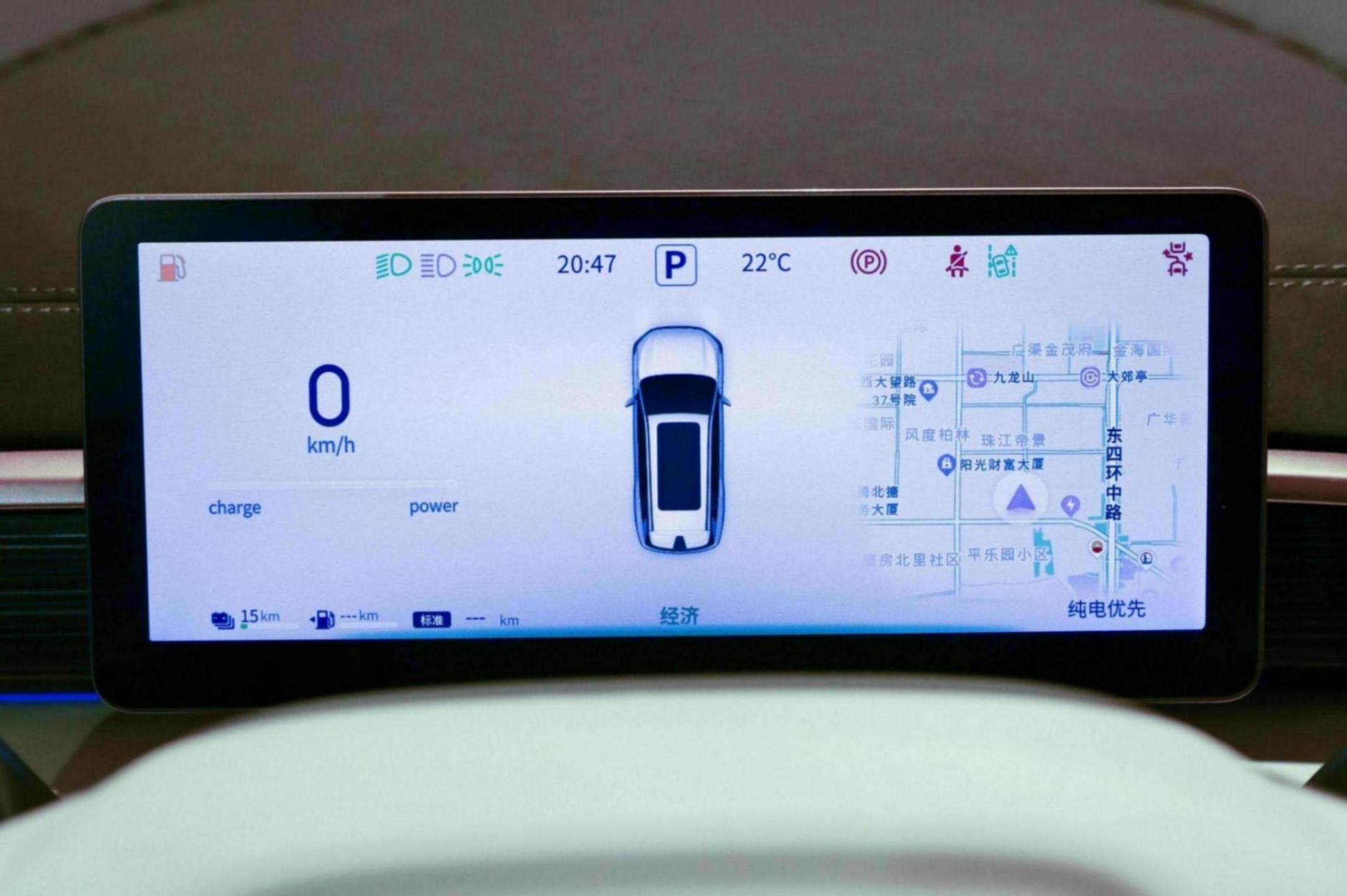 內飾方面,呈現出簡潔的對稱式設計,沒有多余的實體按鍵,采用懷擋換擋機構,看起來簡約雅觀。用料上,使用了大面積軟質材質,搭配木紋飾板,不僅手感舒適,而且車內沒有異味,家里小孩可以放心乘坐。配備兩幅式方向盤、可翻轉的全液晶儀表、15.6英寸懸浮式中控屏,支持手勢控制功能、語音控制等,車機芯片為高通驍龍8155,預計能帶來不錯的體驗。中央島臺提供了兩個杯架和無線充電功能,滿足了現代家庭出行的多樣化需求。