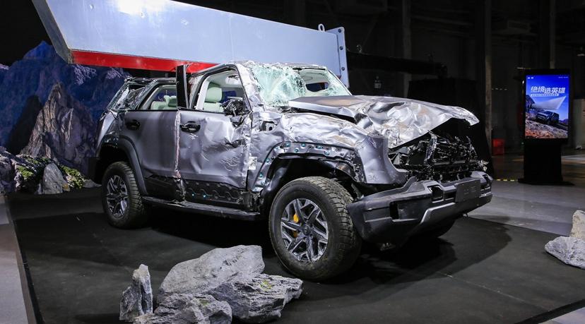 在此前1噸重大刀10米高空劈砸車頂、側面撞擊車身、18米高空車輛墜落翻滾著地等3項測試中,全新BJ40刀鋒英雄版駕乘空間均保存較為完整。