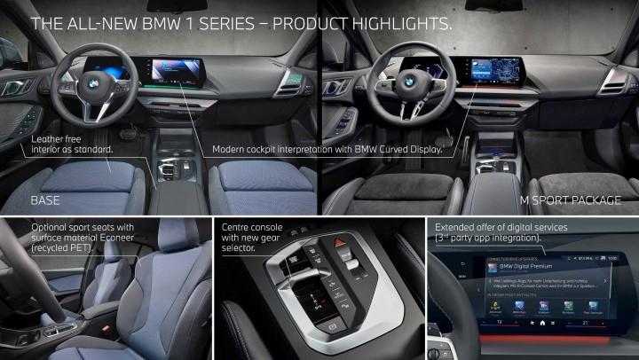 原廠強調,對應永續發展,大改款 1 Series 內飾取消皮革鋪陳,改以再生聚酯制成的材質打造,提供類皮革乘坐體驗的舒適性,同時兼具豪華氣息,中央鞍座沿用慣用新世代電子線傳撥動式排檔,也可透過 M 皮革方向盤后方換檔撥片控制,全新 1 Series 將延續品牌科技,支援 BMW Digital Key Plus 數位鑰匙,同時可搭配 My BMW App 使用。
