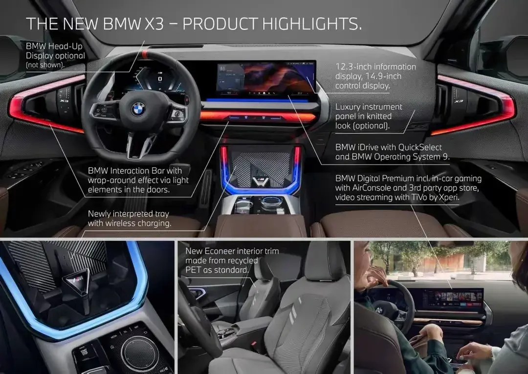 當(dāng)下全新的第4代寶馬x3實(shí)車曝光并且在海外即將上市,可以說(shuō)全新的第4代寶馬x3在外觀和內(nèi)飾方面都打破了傳統(tǒng)的設(shè)計(jì)風(fēng)格和理念,整體的科技感和運(yùn)動(dòng)感更強(qiáng),對(duì)于老款車型對(duì)比來(lái)說(shuō),可以說(shuō)一代更比一代強(qiáng)。這款全新的第4代寶馬x3和老款車型形成了鮮明的對(duì)比,整體的氣場(chǎng)拉。滿,在整體的外觀設(shè)計(jì)方面更加具有立體化,風(fēng)格表現(xiàn)寶馬x3是一款豪華中型suv,國(guó)內(nèi)消費(fèi)者。無(wú)論是年輕人還是中年消費(fèi)群體,對(duì)于這款車型都是非常了解的,這款車型展現(xiàn)出的綜合實(shí)力也比較強(qiáng),品牌力空間動(dòng)力和整體的流行化風(fēng)格都非常濃重,是一款比較符合年輕人的車型,尤其是第4代版本,運(yùn)動(dòng)感更加充分。