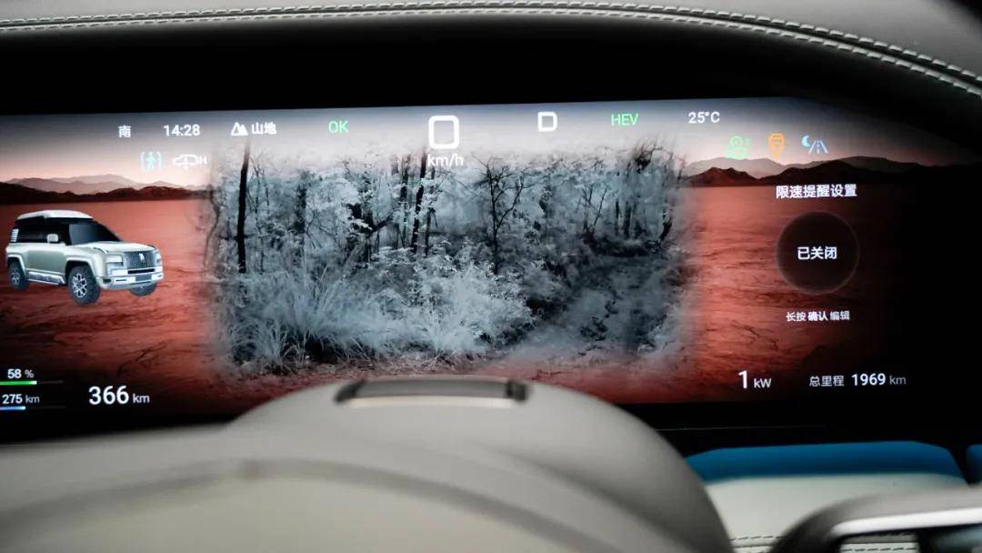 考慮到U8越野玩家版主要面向的是專業越野消費群體,因此在配置方面,該車取消了城市/高速領航輔助等舒適性功能,但像基礎的L2級智駕輔助、540°行車影像等功能卻并沒有減配。此外,該車還增加有豪華版沒有的紅外夜視系統,其最大向前探測距離可達到300m,反映到儀表盤上的顯示效果比較清晰,除了向前探測之外,該系統還能自動識別行人、車輛,并給到用戶預警,對于視線不明的夜間環境有較大的輔助作用。