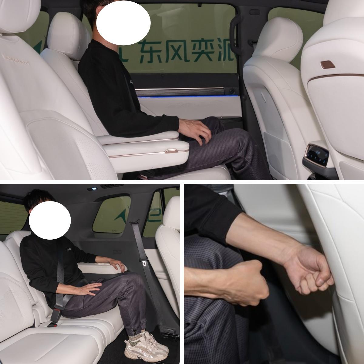 談到二孩家庭購車,空間是必看的一點。eπ008車內采用2+2+2的大六座空間布局,得益于5002mm的車長和3025mm的軸距,新車第二排和第三排的空間寬敞度也有所保障。我們實測下來,身高177cm的朋友坐在二排,腿部頭頂空間均寬裕舒適;而一向容易被忽略的三排,坐下來腿部也能剩下2拳的空間,應對日常滿員出行,車內空間綽綽有余。