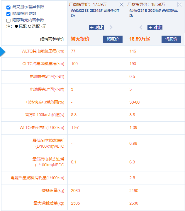 首先,這兩款車雖然使用了能量密度一樣的電池,但CLTC工況純電續航里程依然有差異。
