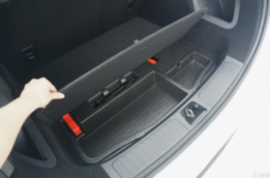 比如由于物理檔把換成了懷擋,于是中間手扶箱的空間就讓了出來,最大容積達到9.4L;比如后備箱空間雖然不算突出,但內部規整,并且兩邊都預留了掛鉤與掏了兩個尺寸不小的儲物格;在掀開后備箱底板后,在工具箱也預留了幾個儲物格,當然這塊是犧牲了備胎換來的空間……