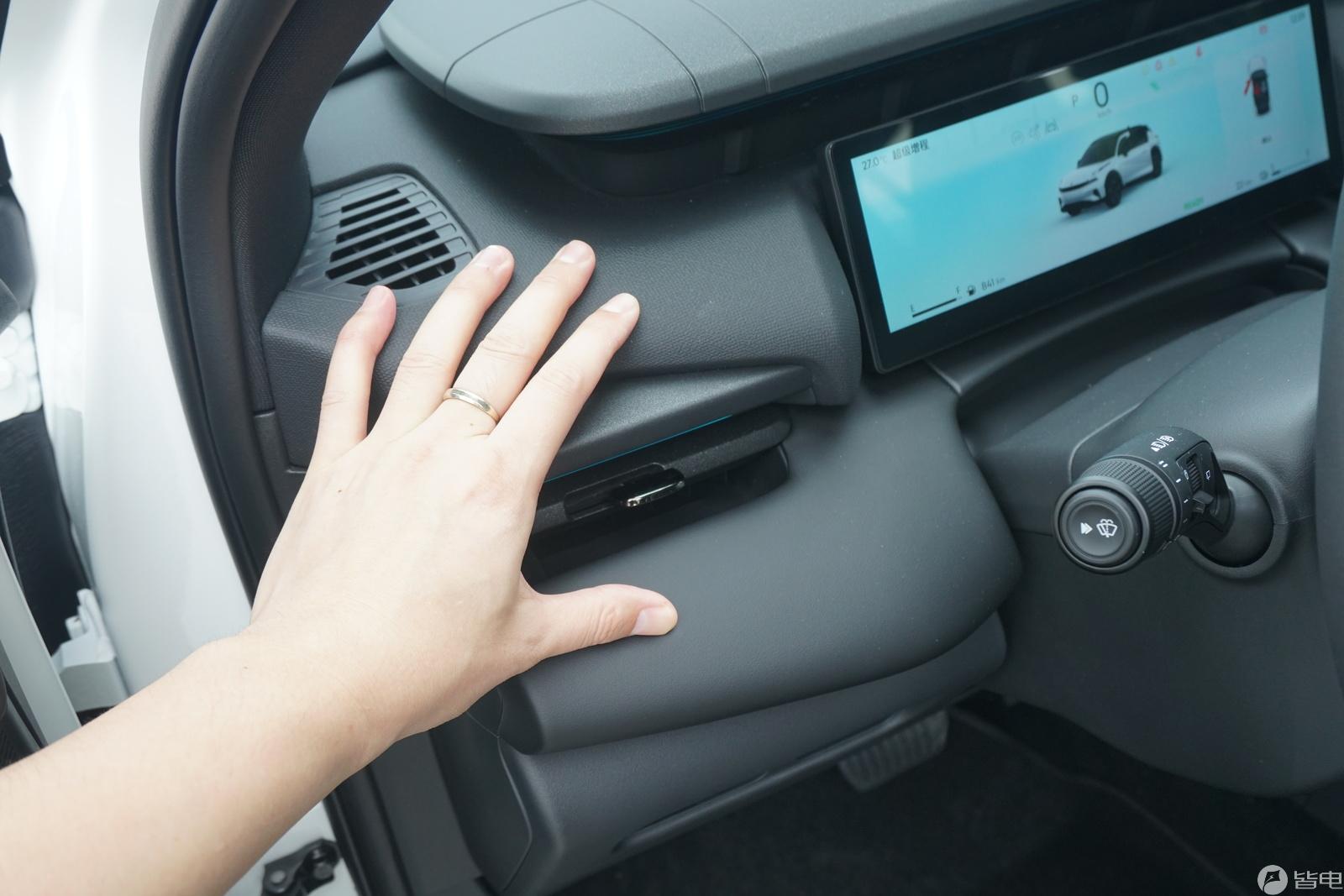 06EM-P沿用了與08一樣的懸浮島設計,雖然材料摸起來是硬的,但是上面做了一些仿縫線的設計,增加了視覺的質感,加上門板上的氛圍燈,在這個價位里面,領克06EM-P呈現了很好的質感;