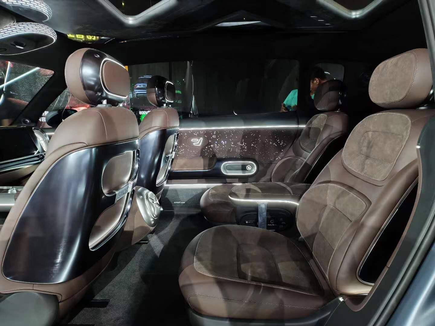 還有對開式車門設(shè)計,是不是很有勞斯萊斯的范。無B柱設(shè)計讓車內(nèi)空間一覽無余,前后排都是獨立座椅的布局,讓每位乘客都有獨享的空間體驗。星空頂是沒有了,但是環(huán)境燈光和內(nèi)飾燈光秀是足夠的亮眼。
