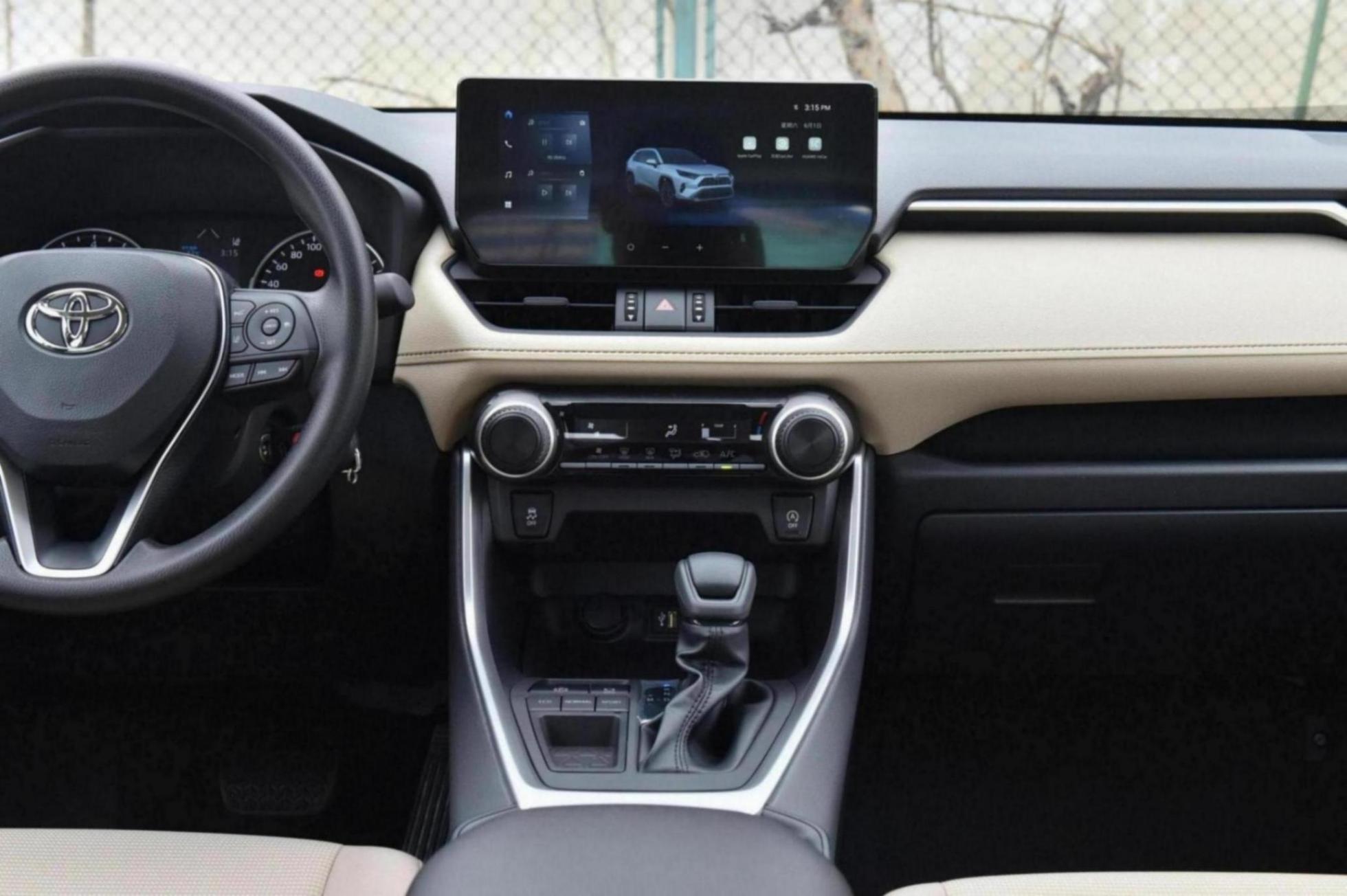 在內飾部分,一汽豐田RAV4榮放中控臺配備了12.3英寸全液晶儀表盤和10.25英寸懸浮式中控車機屏幕;采用三幅式方向盤和傳統機械擋桿,支持無線手機互聯、OTA升級,車機APP更可獨立更新;內置百度CarLife、趣駕WeLink等,配備了全景天窗、手機無線充電、皮質方向盤/座椅、前排座椅加熱、大燈組自適應遠近光、360°全景影像等配置。