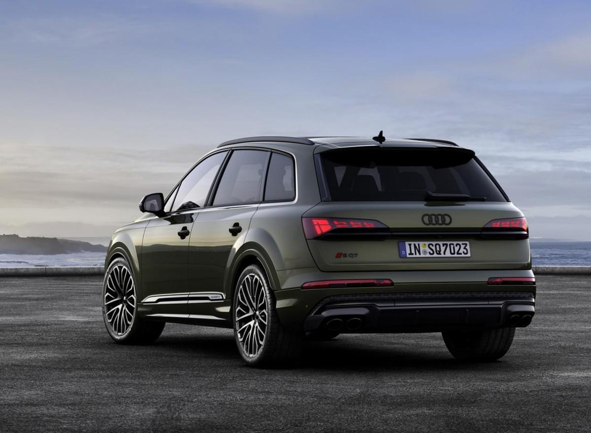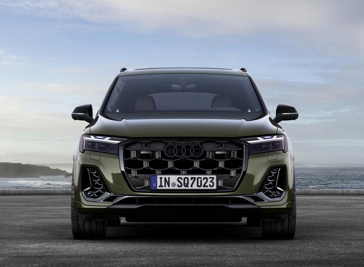 外觀方面,新款?yuàn)W迪 SQ7 與新款?yuàn)W迪 Q7 一致,使用輪廓更粗壯的八邊形進(jìn)氣格柵,中網(wǎng)及下包圍兩側(cè)均帶有大孔徑黑色蜂窩狀結(jié)構(gòu)。頭燈組內(nèi)部結(jié)構(gòu)調(diào)整,LED 日間行車燈移到上方位置,支持四種燈光簽名樣式變換,還提供帶有激光大燈的高清矩陣式 LED 頭燈選裝。新款?yuàn)W迪 SQ7 采用全新的數(shù)字 OLED 尾燈組,支持四種個(gè)性化燈光簽名變化以及接近指示功能,繼續(xù)配備雙邊共四出式排氣尾管。