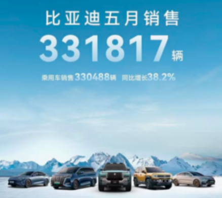 比亞迪5月銷售331817輛