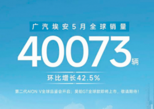 廣汽埃安5月銷售40073輛