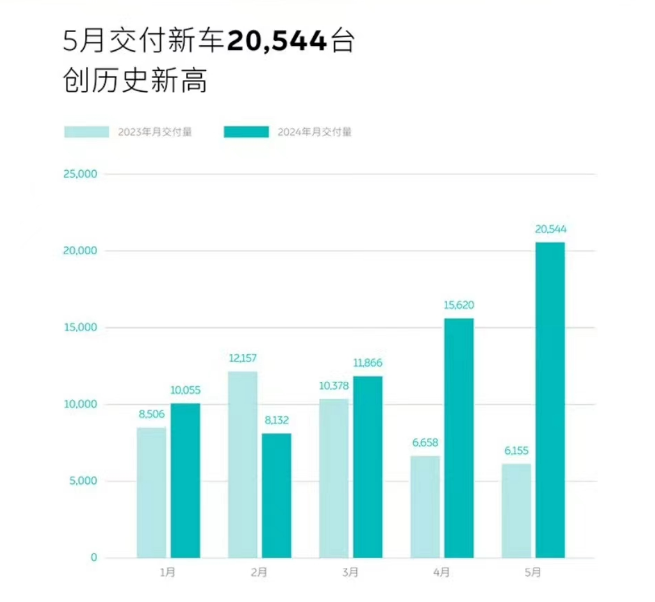 蔚來5月交付20544輛