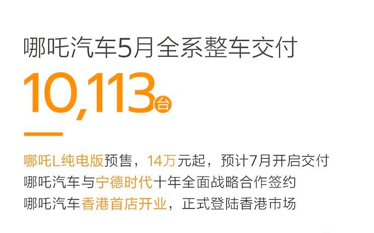 哪吒5月交付10113輛