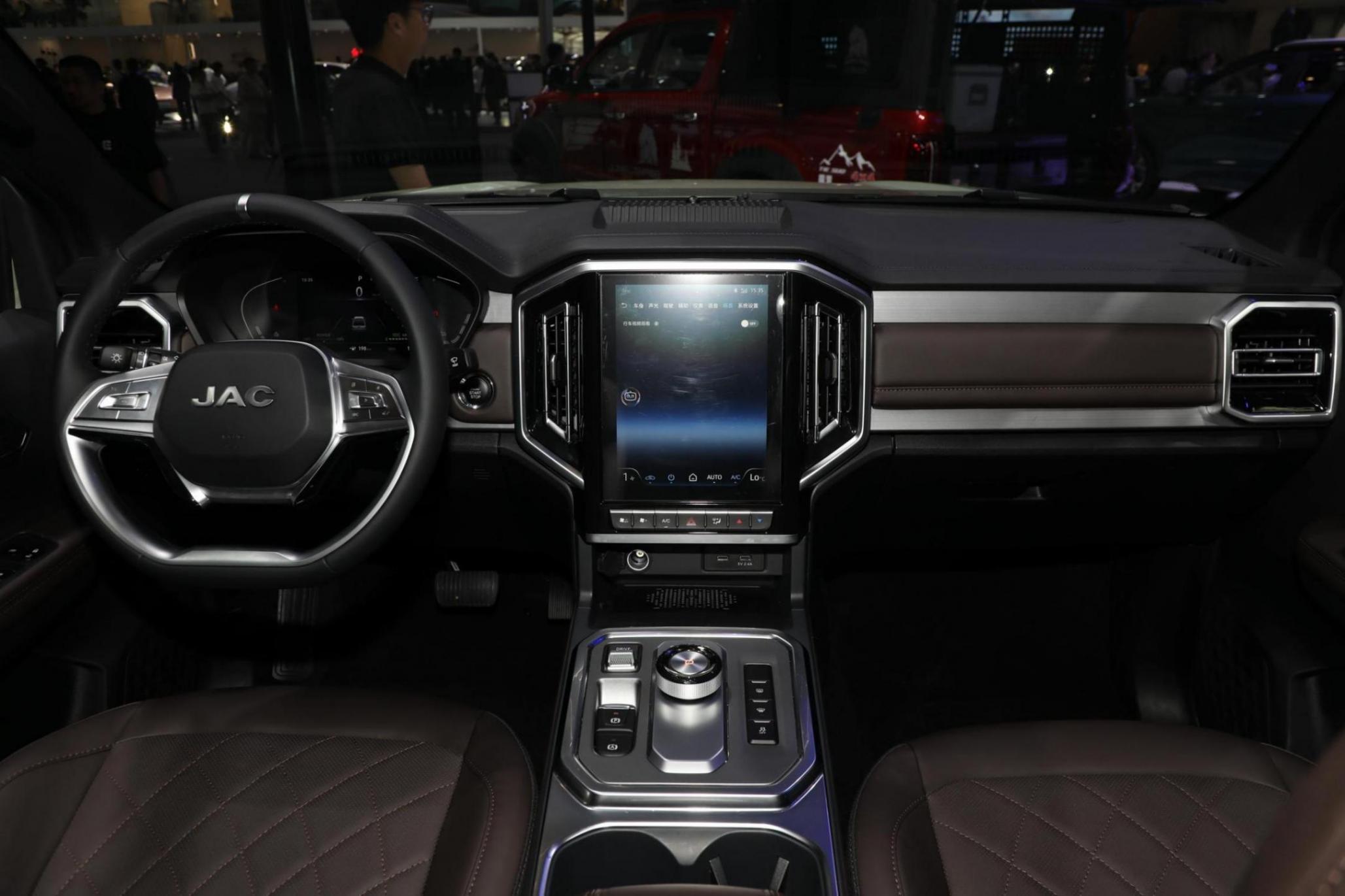 江淮悍途EV在內(nèi)飾方面,主打簡(jiǎn)約,實(shí)用的設(shè)計(jì)風(fēng)格,沒(méi)有什么花哨之處,內(nèi)飾由棕色和黑色組成,中控屏幕的尺寸為10.4英寸,方向盤(pán)和座椅均采用皮質(zhì)包裹,換擋機(jī)構(gòu)采用旋鈕式。