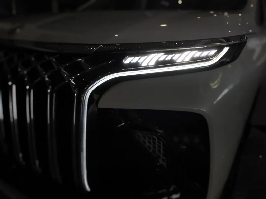 本次實拍車型為中國結系列,前臉采用直瀑式的中網(wǎng)進氣格柵,配合頂部中國結的元素點綴,既有優(yōu)雅又霸氣。前大燈共使用了150顆LED燈珠,點亮后很有辨識度。兩側日間行車燈與主燈源的設計與進氣格柵融為一體,再加上銀色鍍鉻飾條的點綴,增加了精致感。