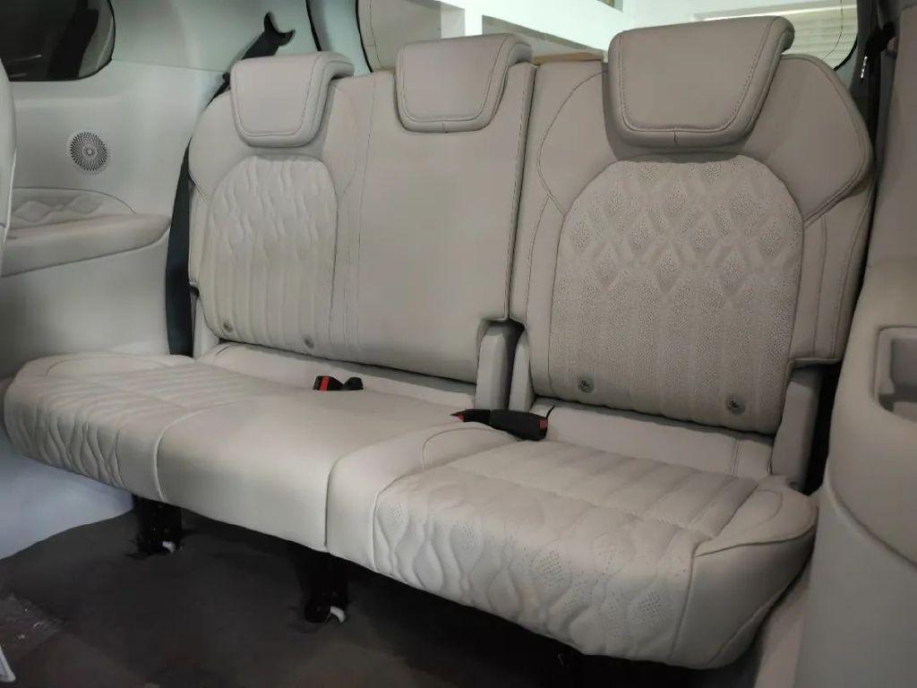 值得一提的是,第二排座椅支持前后、靠背和左右調節(jié),特別是左右調節(jié),在保證第二排座椅寬度的前提下,帶來了200mm超寬的二排中央通道,再加四純平地板的設計,即便是成年人也能更加方便進出第三排。而且第三排不僅擁有985mm的頭部空間,1455mm的肩部空間,還有著不錯的舒適性,靠背角度可無級調節(jié),可垂直向后調節(jié)22度、向前調節(jié)98度,也可以向前放平,形成超大三排儲物空間。