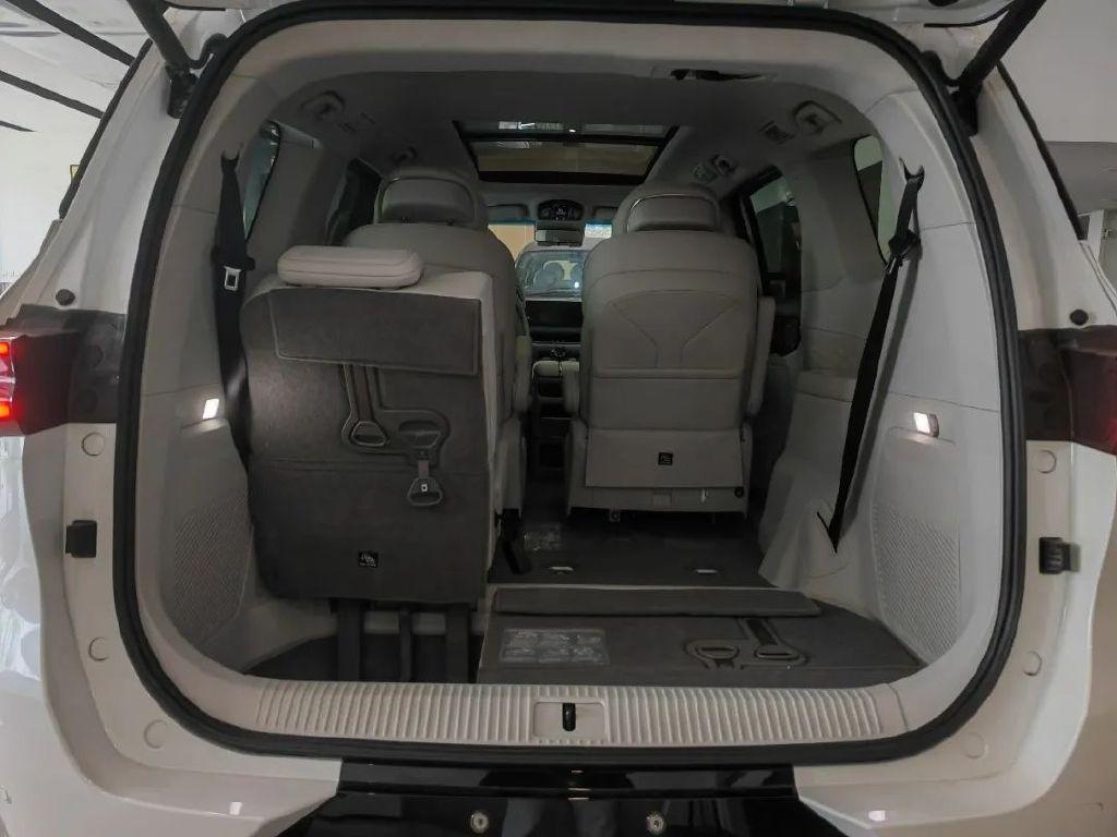后備廂表現(xiàn)也不錯,在三排滿員乘坐的情況下,后備廂容積為593L,足以放下車內7個人的日常行李。如果二排滿員、三排無人的情況下,第三排座椅還可以折疊隱藏至底板下方,帶來純平的使用空間,后備廂容積達1416L,可容納2輛成人自行車,2輛兒童折疊自行車、大空間野炊用具等。如果是在2人模式下,可以將第二排座椅向前移動至最前,此時后備箱容積可達2792L,完全可以當作1.8m大床房,外出游玩時直接把酒店錢給省了。