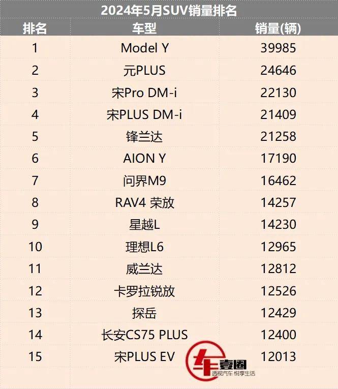 在具體的車型表現上,Model Y猛發(fā)力獲得單月銷冠;問界M9穩(wěn)定發(fā)揮成銷量擔當;日系SUV代表車型CR-V跌出榜單。那么5月SUV市場具體情況,圈哥就來帶大家仔細聊一聊。