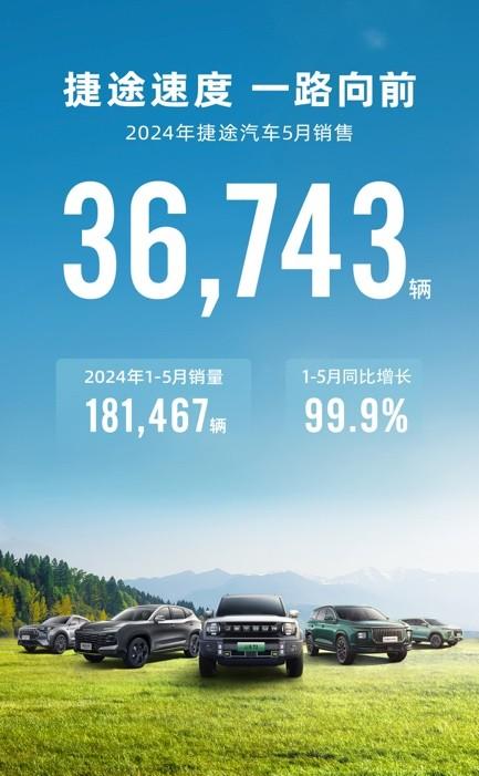近日,捷途品牌公布了5月份銷量快報(bào)。上個(gè)月,捷途汽車實(shí)現(xiàn)單月銷量36743輛,同比增長(zhǎng)85.4%;1-5月累計(jì)銷量為181467輛,同比增長(zhǎng)接近翻倍水平。