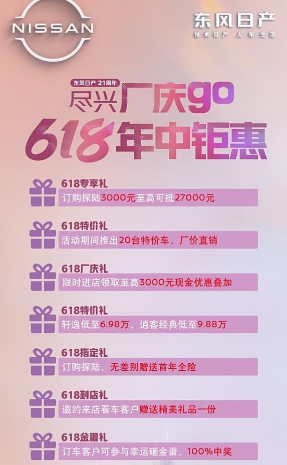東風日產也挺狠,面對新能源對手步步緊逼,針對618和東風日產21周年兩個節點,推出了一系列的優惠,這其中,除了各種權益和好處,比較亮眼的兩個點是軒逸優惠后的起步價達到6.98萬;逍客經典優惠后的起售價達到9.88萬。鬼哥電話采訪了東風日產經銷商,該兩款車型可以享受這樣的優惠,但這是裸車價,而且,優惠有時間限制,屬于限時優惠。