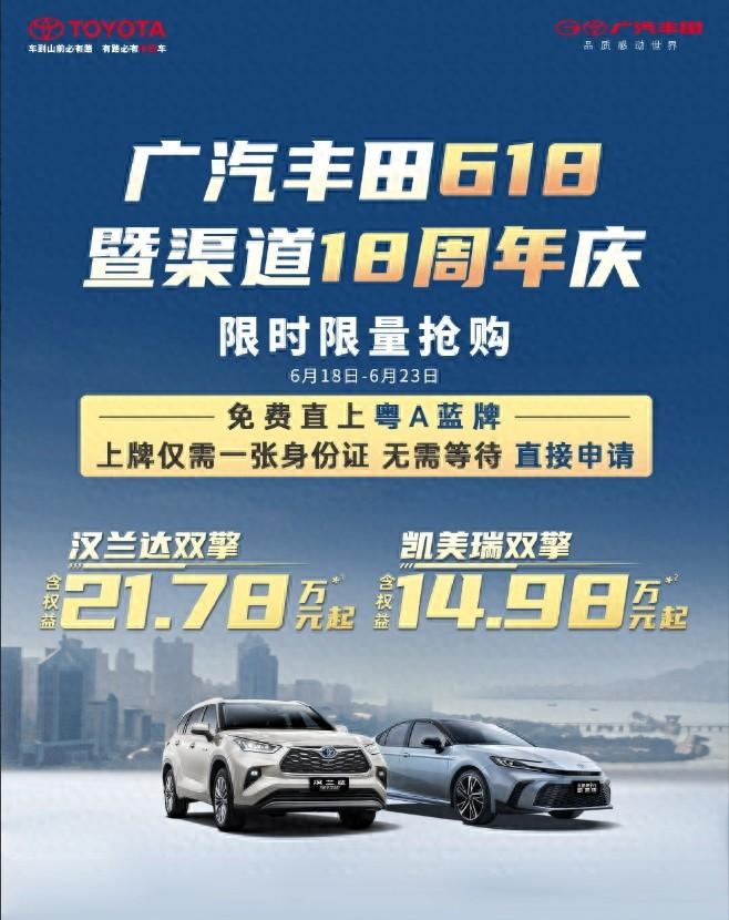 很多網友頗感驚訝的是,這次促銷,沖鋒在前的是日系品牌。從廣汽豐田的海報上能夠看到,廣汽豐田以618以及渠道18周年慶推出限時限量搶購活動。