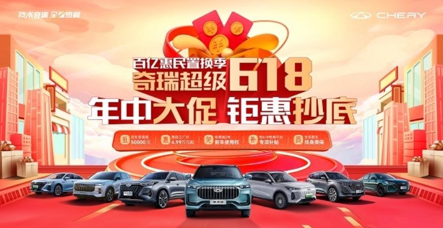 此外,奇瑞汽車也參與其中,針對618活動,奇瑞打出“百億惠民置換季 奇瑞超級618”,活動時間到6月30日截止。瑞虎9、全新一代瑞虎7、2024款艾瑞澤5以及風云T9等車型都參與到活動中,官方還打出惠民工廠價4.99萬元起、免費抽2年新車使用權等活動。